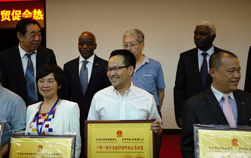 中非經(jīng)濟(jì)貿(mào)易促進(jìn)會(huì)與世界華商(非洲)聯(lián)合會(huì)聯(lián)合設(shè)立“一帶一路傳染病防控科技發(fā)展聯(lián)盟”,今日舉行成立與授牌儀式。
