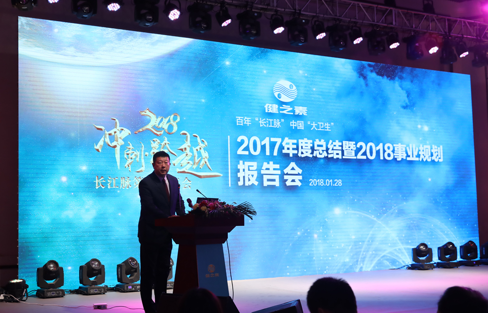 不忘初心,牢記使命。過去的一年,長江脈在黨的十九大勝利召開的新時代東風里,搶抓國家一帶一路等重大戰(zhàn)略機遇,應(yīng)勢而為,勇于擔當,堅持立足長遠謀發(fā)展。2018年,長江脈將緊跟新時代的步伐,以嶄新的面貌,百倍的信心與努力,強塑責任擔當,堅守情懷與追求,沖刺新目標,致力新跨越,努力打造長江脈·健之素“大衛(wèi)生”第一品牌!