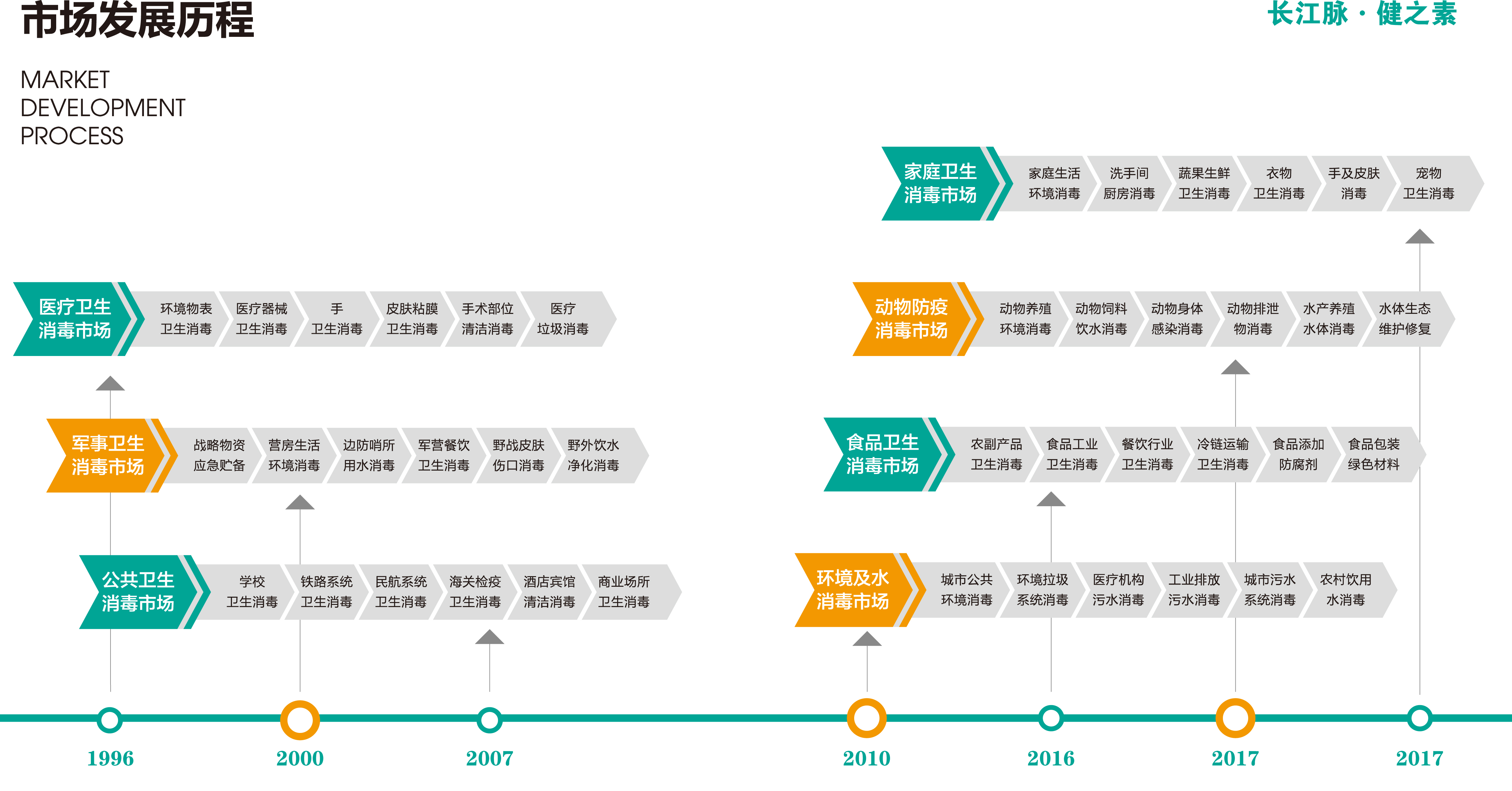1996年,戴彥榛創(chuàng)立以消毒科技產(chǎn)品的研發(fā)為公司初始業(yè)務(wù)。在完成"消毒泡騰片"等新產(chǎn)品研發(fā)并獲得衛(wèi)生部批準(zhǔn)后,1997年開始以"健之素"為品牌組織生產(chǎn),并成功推向市場。長江脈公司從無到有、由小到大開始了堅定不移的創(chuàng)業(yè)之路。