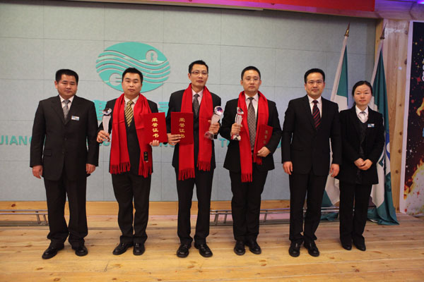 3名長(zhǎng)江脈優(yōu)秀管理者獎(jiǎng)與公司領(lǐng)導(dǎo)合影