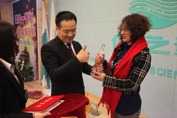 戴彥榛董事長(zhǎng)親自為“長(zhǎng)江脈2012年度人物獎(jiǎng)”得主--楊莉頒獎(jiǎng)