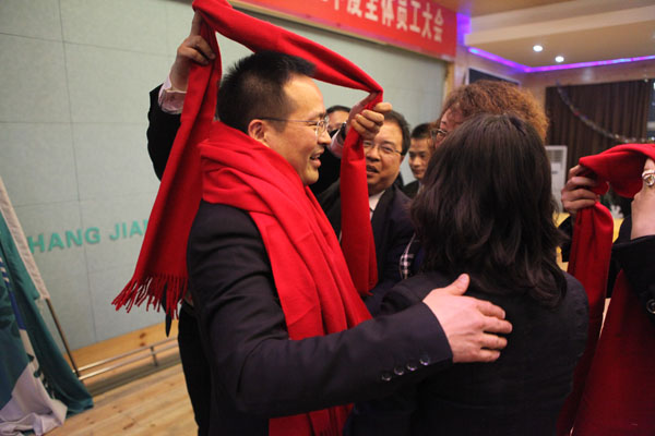 獲獎(jiǎng)?wù)咦园l(fā)地將象征榮譽(yù)與奉獻(xiàn)的紅圍脖披在戴總身上,以示感激!