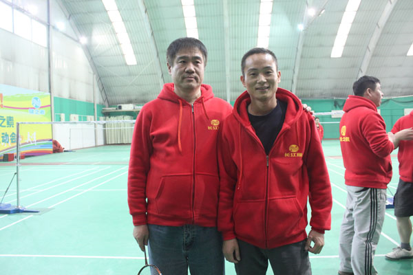 羽毛球男子組冠軍孫國光(左)與亞軍沈建民(右)合影