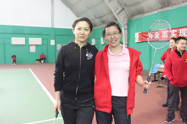羽毛球女子組冠軍寇寧麗(右)與亞軍陳靜(左)合影
