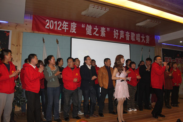 傍晚,運動后歸來的全體員工熱情洋溢地參加了公司精心舉辦的迎新年晚宴,“健之素好聲音”的決賽鑼聲也正式敲響,在預(yù)賽中脫穎而出的10名選手于宴會的后半程在全體職工的見證下一展歌喉,角逐“健之素最佳好聲音”的殊榮。