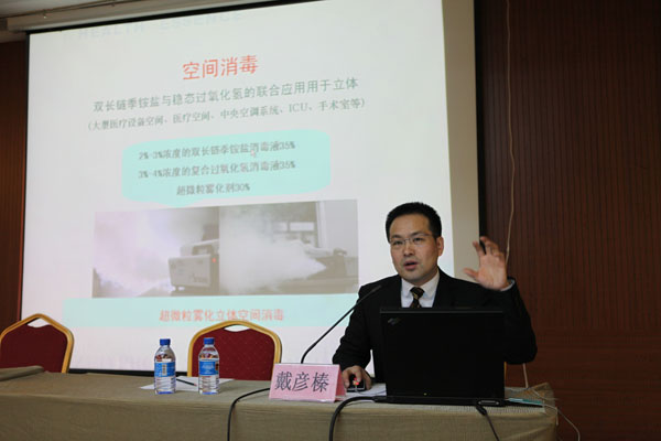 戴彥榛董事長正在作《消毒技術(shù)的新進展》學術(shù)報告