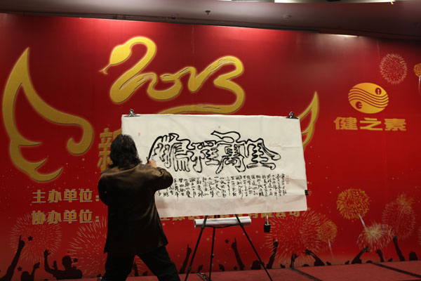 才藝達人秀,一邊傾情獻歌,一邊創(chuàng)作書法。