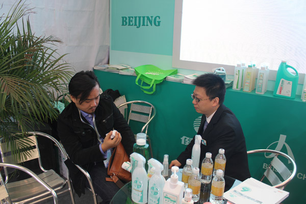 “長江脈.健之素”的工作人員展會(huì)上為前來參觀咨詢的客戶提供周到細(xì)致的講解服務(wù)